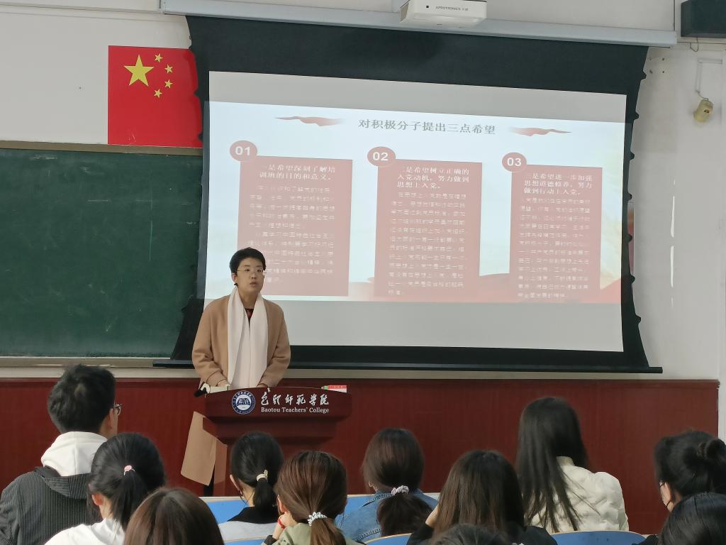 为了进一步加强入党积极分子全面了解和掌握党的基本知识,端正入党动机,坚定加入中国共产党的信念,明确肩负的责任和使命,教育科学学院党总支于4月20日在博东203举办了第46期积极分子培训班开班仪式。