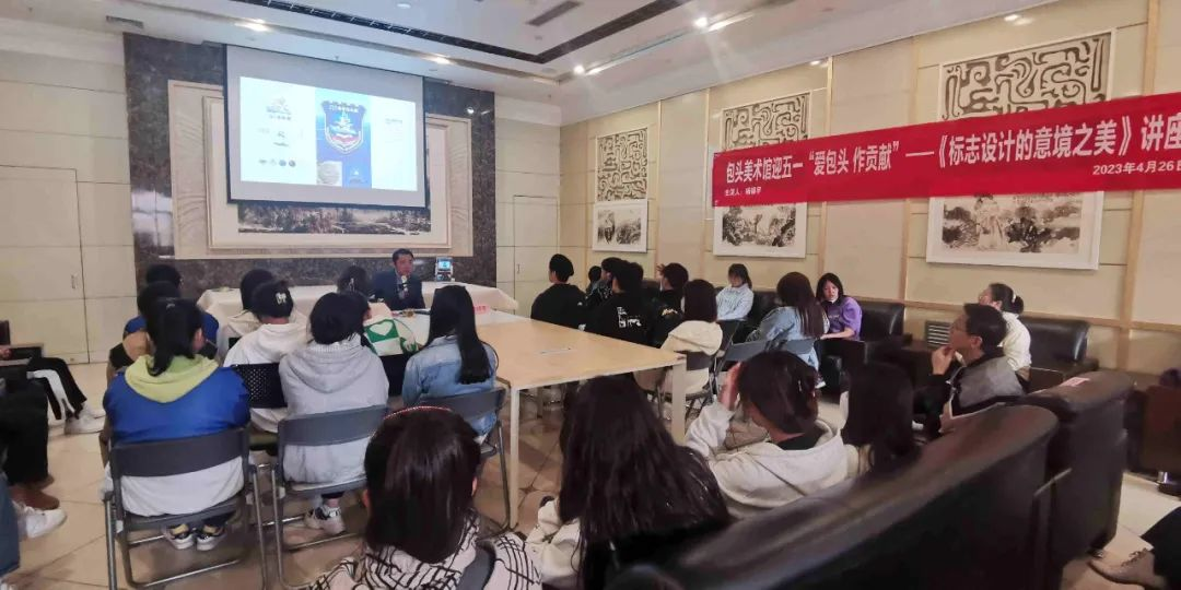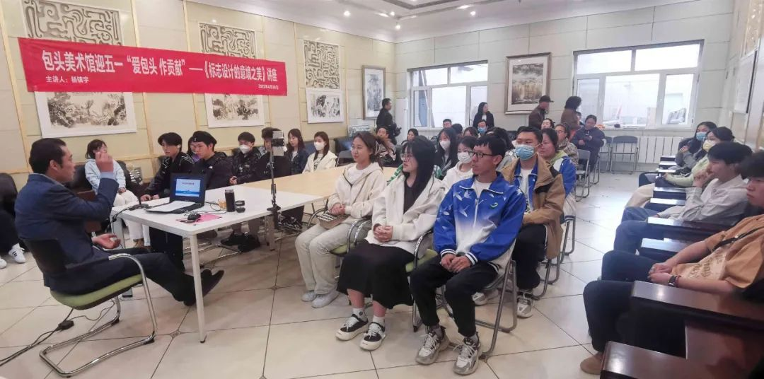 为庆祝“五一”国际劳动节,进一步深入学习贯彻党的二十大精神,弘扬劳动精神、奋斗精神、奉献精神、创造精神,以实际行动践行“爱包头、作贡献”,4月26日,我校美术学院副院长、硕士生导师杨镇宇教授走进包头美术馆,为社会公众进行了一场以迎五一“爱包头 作贡献”为主题的《标志设计的意境之美》讲座,50余人参加了现场活动,400余人在线观看同步直播。