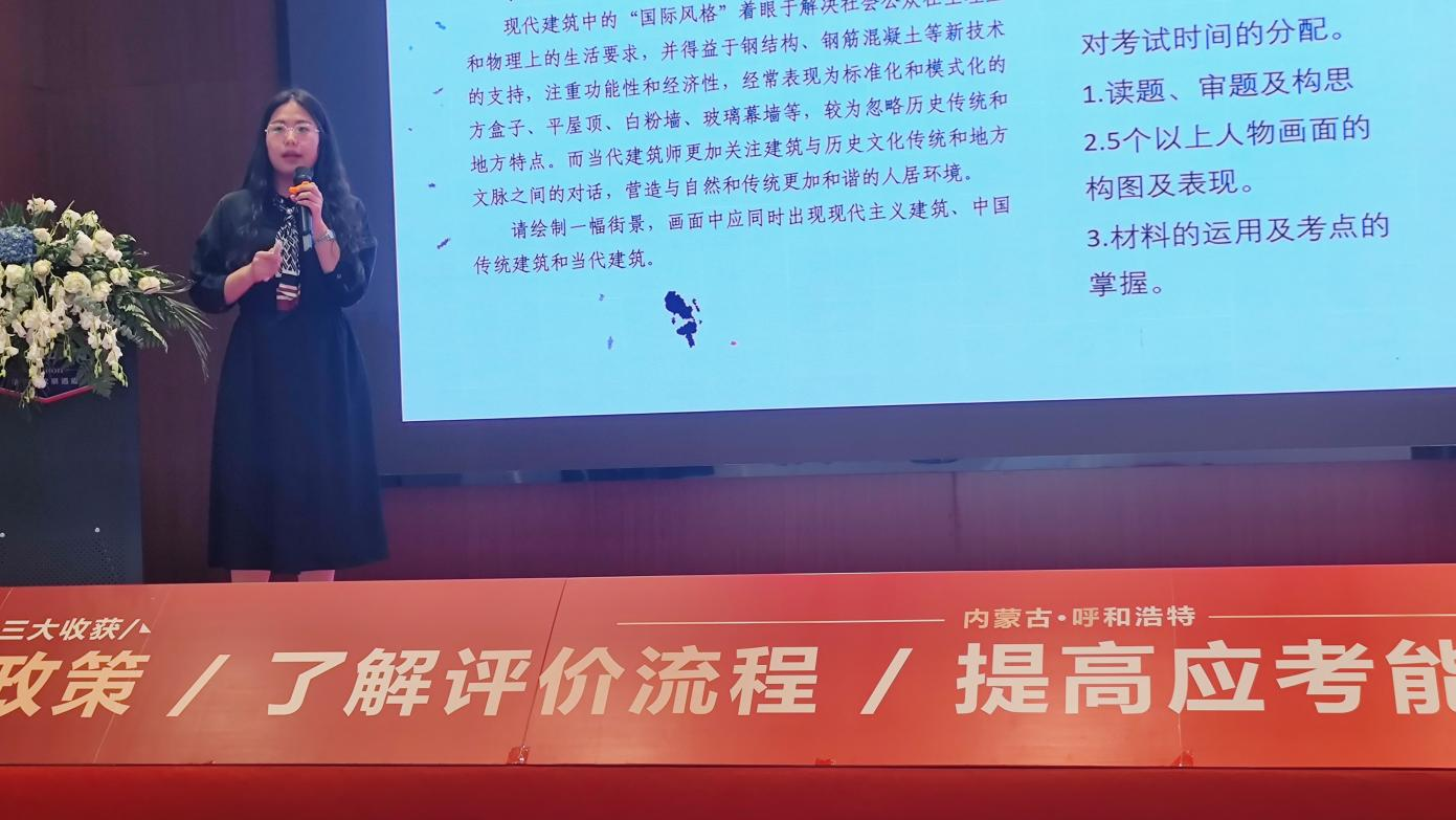 4月18日,美术学院苏杰明副教授带领硕士研究生团队应邀参加内蒙古创新教育协会在呼和浩特市举办的“美术高中与初中考试改革政策解读分析会”。美院硕士研究生高立群作为团队代表向与会领导和老师作汇报,其团队根据国家最新美术课程改革纲要精神,秉持‘以用带学’的理念,结合学科教学安排编写相关课程,内容包括对教育部《关于进一步加强和改进普通高等学校艺术类专业考试招生工作的指导意见》(教学〔2021〕3号,)中考试说明相关政策解读;针对考试内容、考试时间、考试形式、考试工具材料等进行详解;并基于考试说明,进行了美术课程教学案例展示,受到与会人员的一致好评。(美术学院)