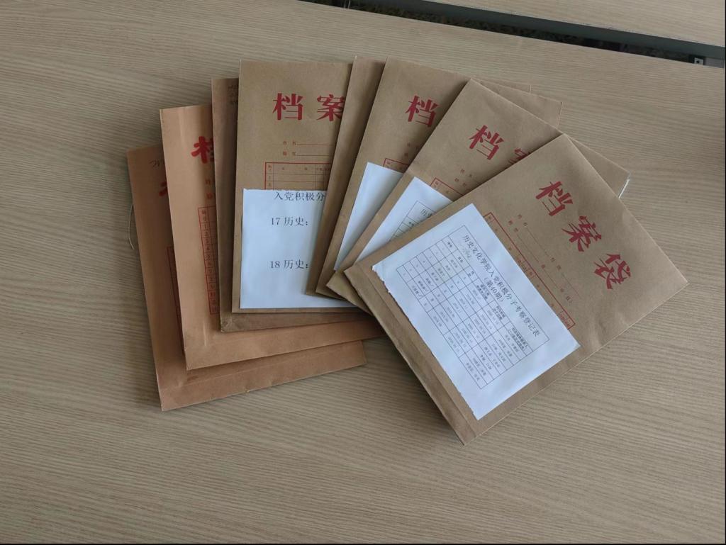 在此次档案整序工作中,历史文化学院学生党支部以“党建+专业”为导向,结合图书馆学专业特色,在支部中设立档案整理专岗,支部助理吴宏坡、王雅楠、吴戈全程参与此次整理工作。他们以严谨的态度和高度的责任心,对档案进行详细的审查和分类,确保每一份资料都能准确归档。