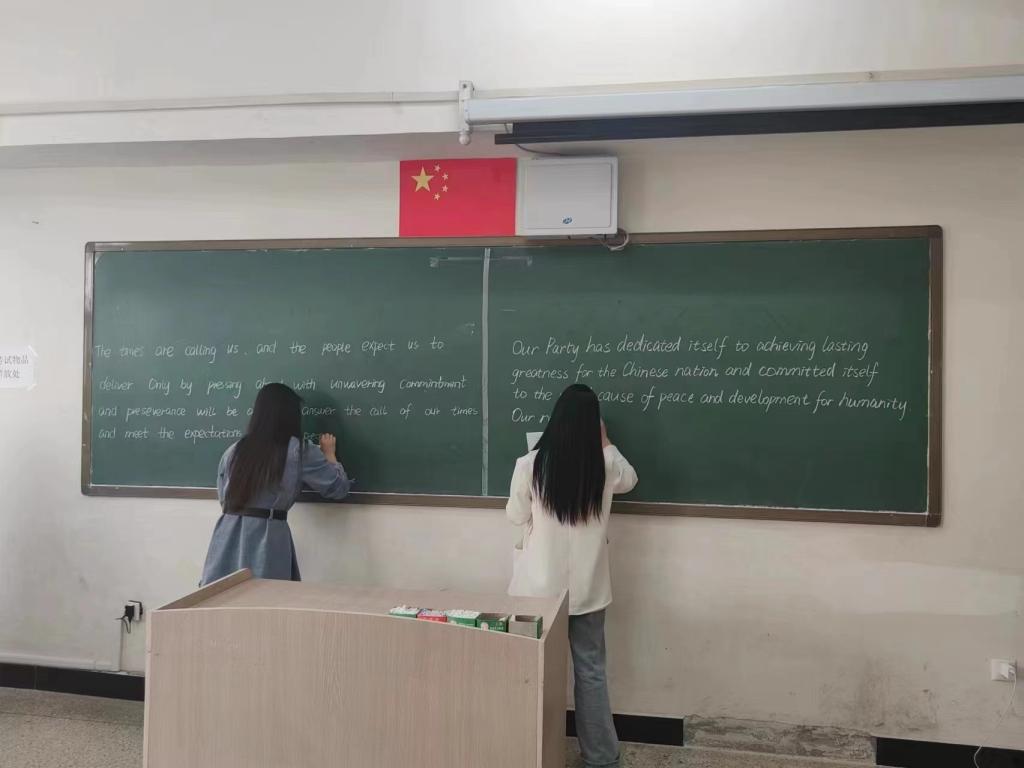 为进一步加强师范生技能培训,提高师范生教学书写能力。4月27日,外国语学院于南逸夫楼222教室举办板书比赛。本次大赛特邀请学院专任教师李荣华、李雪担任评委。