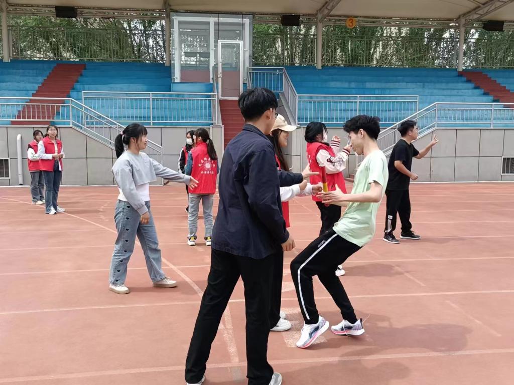 此次活动以“小组接力赛4×100米+知识问答”形式进行。参赛人员自行组队,手握接力棒奋力奔跑,卡点处设置“党的二十大我来答”及“五四精神我来说”等环节,促使学生在体育活动中学习党史知识,体会当代青年担当,深化“五四”纪念意义,感受革命情怀。