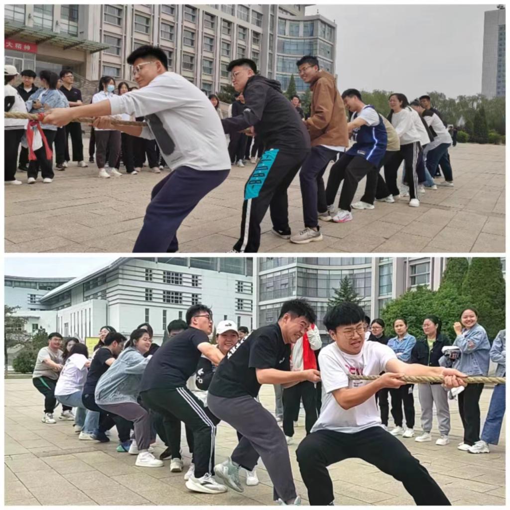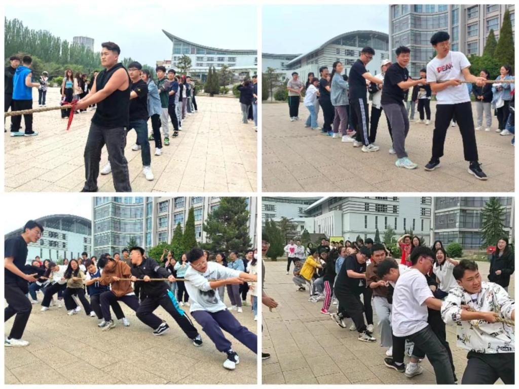 学院9个班级参加了比赛。每支代表队有12名队员,6名男生,6名女生,比赛以现场抽签的方式进行角逐,实行淘汰晋级制。每支队伍精神饱满,团结一心,选手们前腿直立,后腿弓步,身躯后仰,重心下沉,摩拳擦掌,随着裁判的一声哨响,同学们压低重心,卯足劲往一处使,一根绳,一颗心,一起拼!小小一根麻绳,连住同学之间的友谊,集体的努力,众人的配合,在助威声中化作无穷的动力,将青春拼搏风采凝聚。