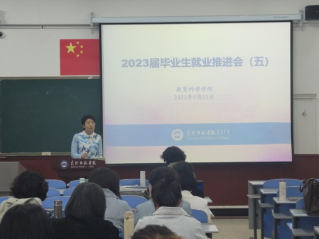 为深入开展学习习近平新时代中国特色社会主义思想主题教育,进一步加强和推动毕业生就业工作,教育科学学院于2023年5月11日下午,在全院教职工范围内召开了2023届毕业生第五次就业工作推进会,会议由教学副院长刘俊英主持。