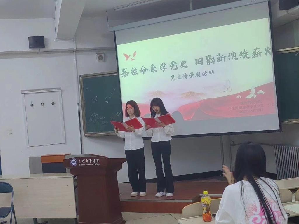 为扎实推进学习贯彻习近平新时代中国特色社会主义思想主题教育走深走实,不断巩固拓展党史学习教育成果,深化总结历史经验、把握历史规律,从历史中汲取继续前进的智慧和力量,赓续红色血脉,教育科学学院于5月12日在博西605举办“鉴往知来学党史,旧影新演焕星火”党史情景剧演绎活动。