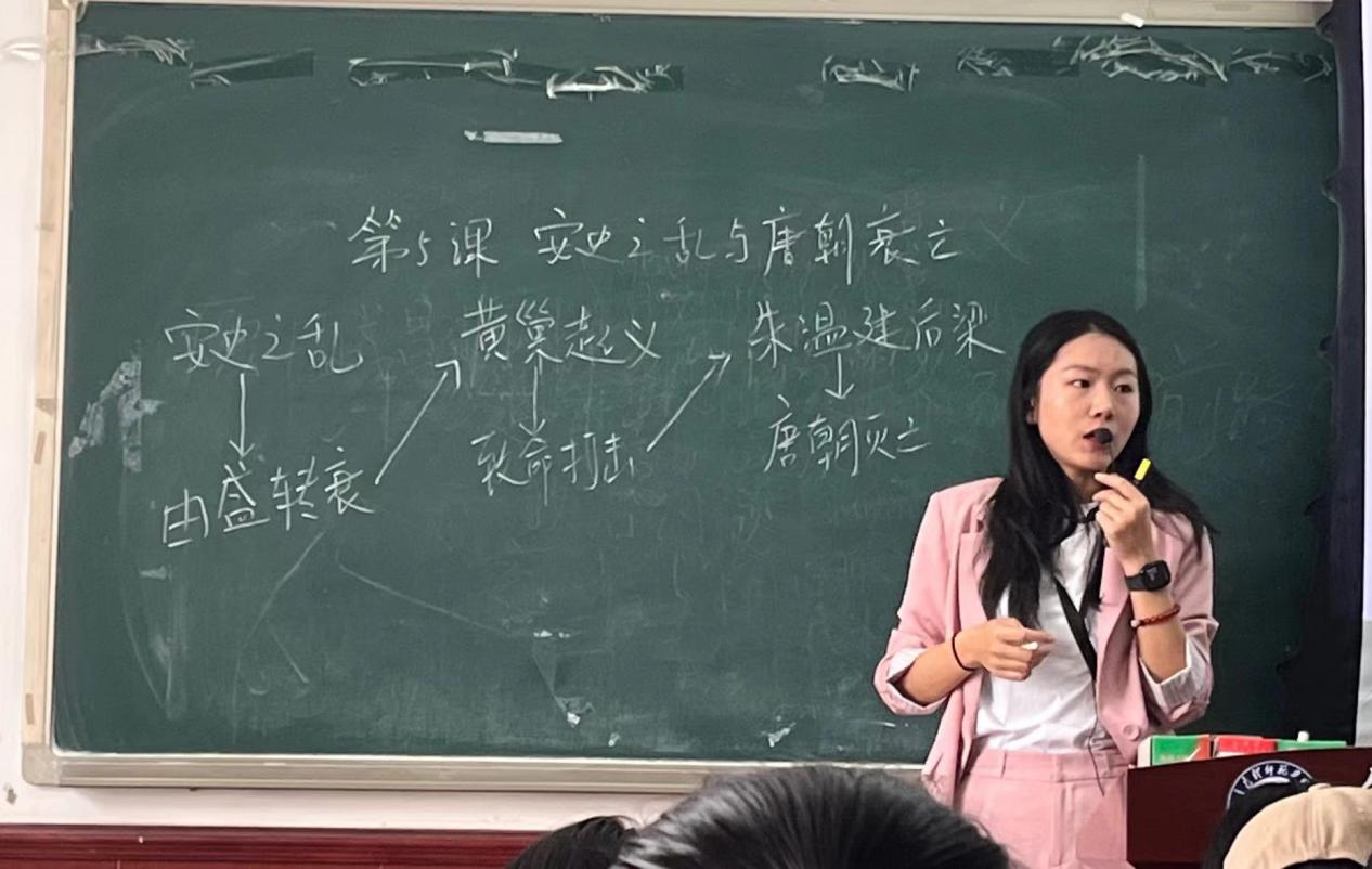 李秋实老师为大家示范讲授了七年级下册第5课《安史之乱与唐朝灭亡》。李老师在上课过程中,教态亲切自然,巧妙地运用了语言描述及提问等方式结合教材内容创设情境,给予了同学们充分的空间去主动学习,同时也很好地发挥了主导作用。这节示范课充分展现了李秋实老师扎实的教学功底,让同学们深受感染、倍受启发。