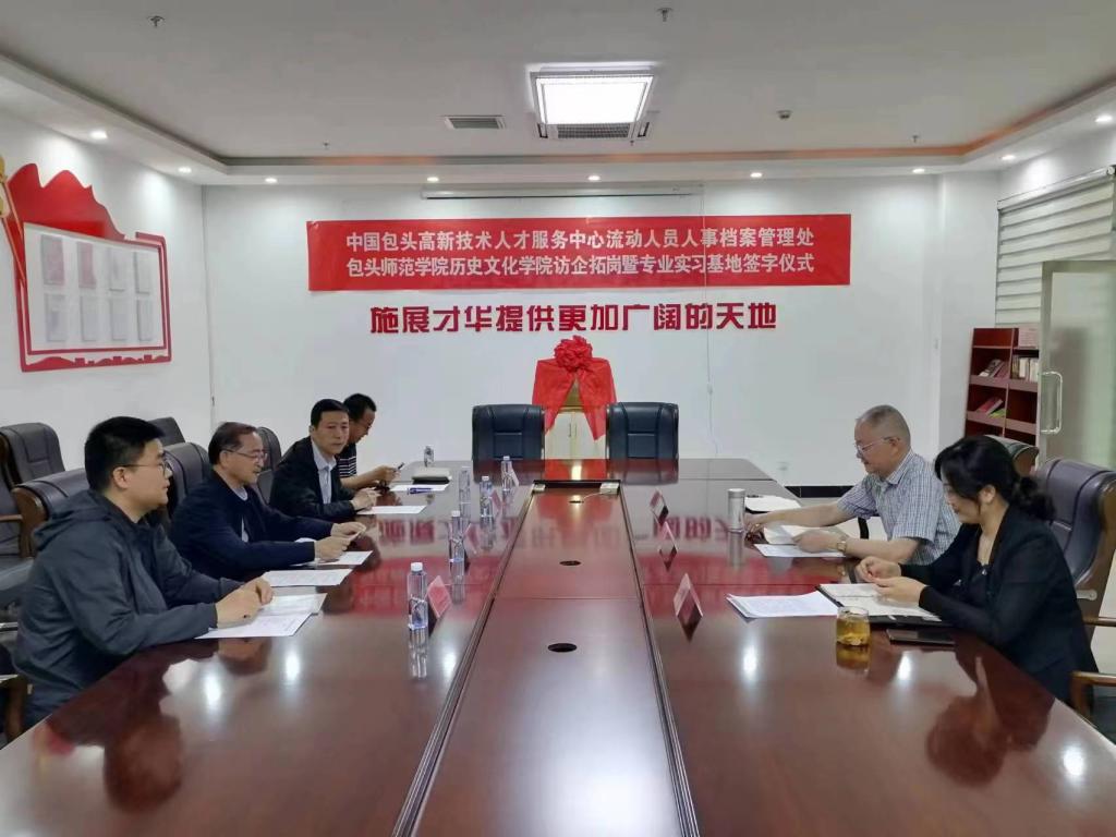 为提高人才培养质量、推进学界业界合作、促进协同育人并提升学生就业质量,历史文化学院于5月25日开展了“访企拓岗”促就业专项行动。当天,历史文化学院院长郝建平、党总支副书记吴冰、图书馆学系主任白禄以及硕士点负责人亢琦一行到访中国包头高新技术人才服务中心,进行了座谈交流。