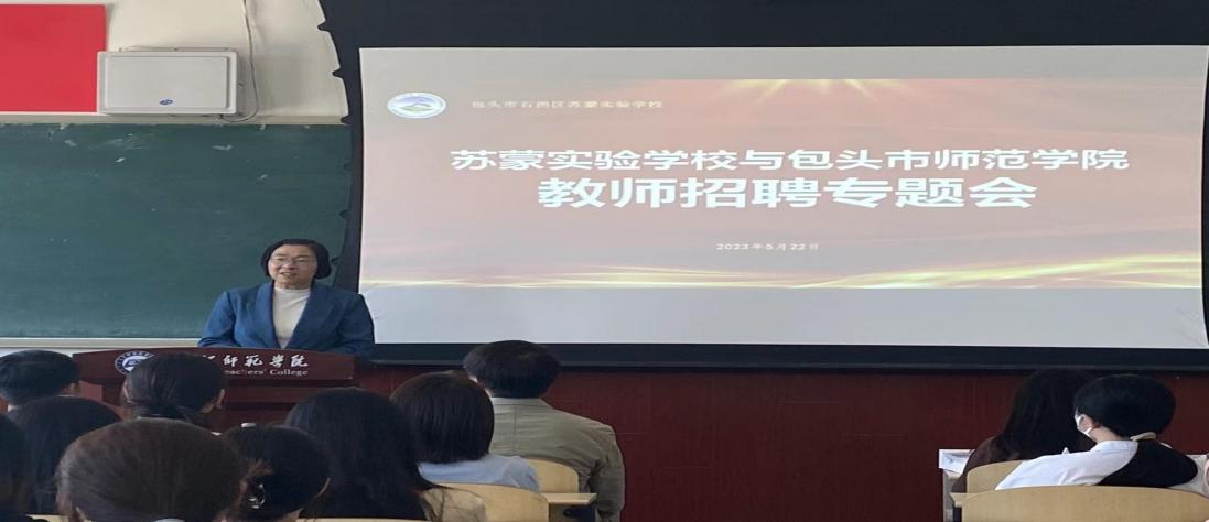 为推动毕业生高质量就业,马克思主义学院于2023年5月22日举办了包头市苏蒙实验高级中学专场招聘会。包头市苏蒙实验高级中学校长王海云一行7人来校现场招聘优秀毕业生,党总支副书记嘎日仓敖日布、副院长李德英、思想政治教育系主任李娜及我校2023届各师范专业毕业生参加了招聘会。