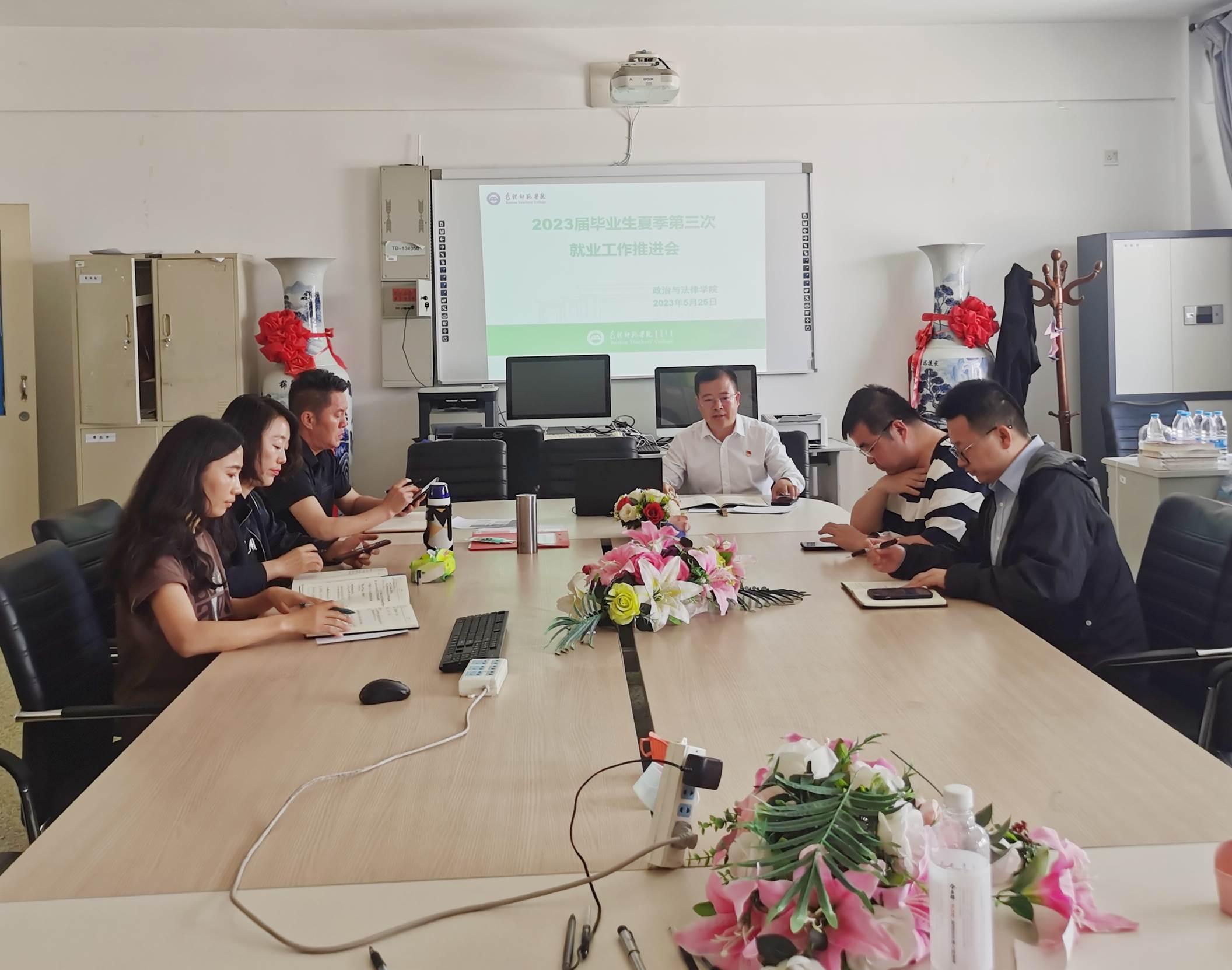 为有效推进学院就业工作,提升班主任、辅导员就业工作指导水平,5月25日下午,政法学院在博学楼729会议室召开了2023届毕业生夏季第三次就业工作推进会。会议由学院党总支副书记郭宏升主持,党总支书记高德胜、毕业班班主任和全体辅导员参加了会议。