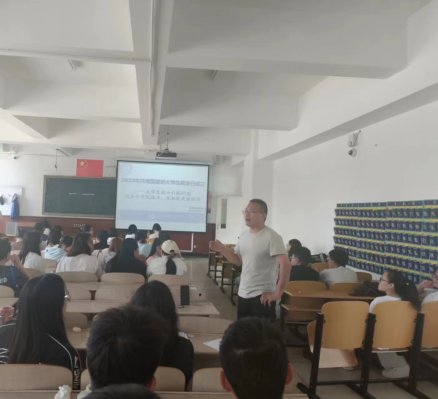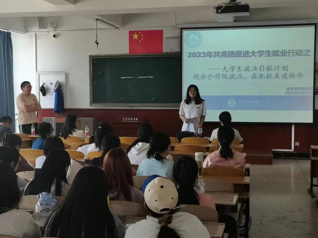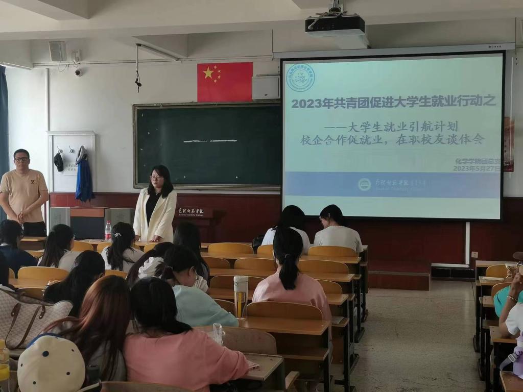 按照学校毕业生就业实施方案的整体部署,为促进化学学院毕业生更高质量、更充分就业,全面推进“共青团促进大学生就业行动”。2023年5月27日,化学学院团总支组织开展了“大学生就业引航计划 —— 校企合作促就业,在职校友谈体会”宣讲活动。化学学院张骁勇副院长、张高峰老师、徐向明老师出席本次活动。