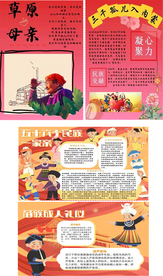 3.开展“记‘易’民族一家亲”活动,通过手帐的形式分享中华民族一家亲的故事,加强了学生对中华民族的了解,对中华文化的认同。培养了学生的民族团结意识,提高了学生维护祖国统一、民族团结的自觉性,成为民族团结融合发展的积极践行着、维护者和宣传者。