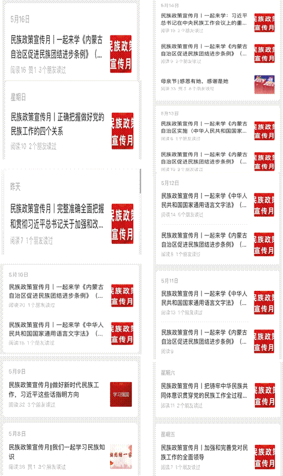 学院充分利用网络资源,通过官微、宣传栏等多种形式有重点、分层次开展宣传报道,连续一个月更新发布铸牢中华民族共同体意识方面的内容,传播民族团结进步正能量,营造民族团结一家亲浓厚氛围,进一步引导全体师生增强民族团结意识,让每一个人都成为民族政策的宣传员、践行者。