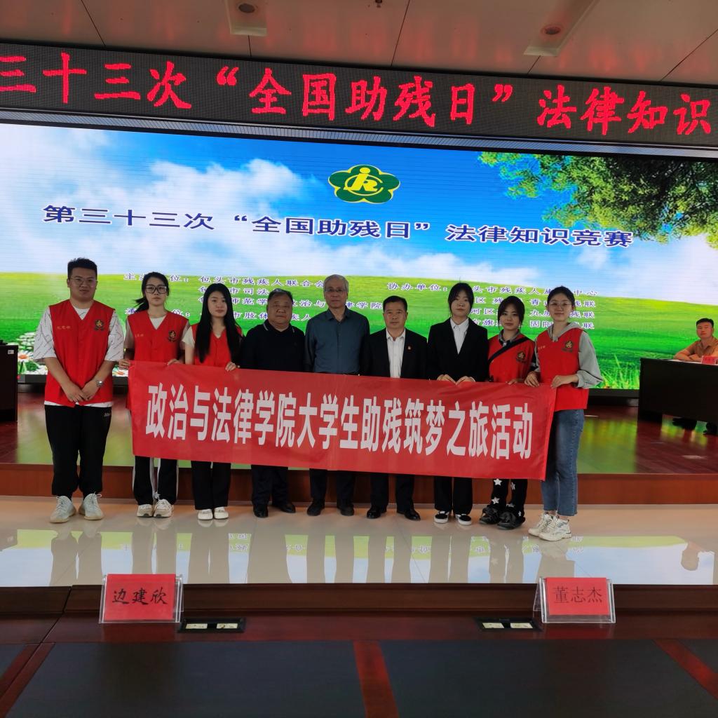 为了加强肢残人士的法律意识,提高他们的法律素质,在第三十三次全国助残日到来之际,5月26日,包头市肢残协会联合包头市残疾人联合会、包头市司法局、包头师范学院政治与法律学院共同举办了包头市肢体残疾人法律知识竞赛。包头市司法局三级调研员董志杰、包头市残联党组成员副理事长边建欣、包头市残联副主席市肢体残疾人协会主席孙喜明、包头师范学院政治与法律学院副书记郭宏升出席了本次比赛,来自昆区、青山区、东河区、九原区以及土右旗、固阳县残联肢体残疾人协会六支代表队、18位选手参加了此次竞赛。政法学院8名学生志愿者做了提前出题、到现场当主持、计分、计时等志愿服务工作,为残疾人提供了法律知识方面的帮助和支持。