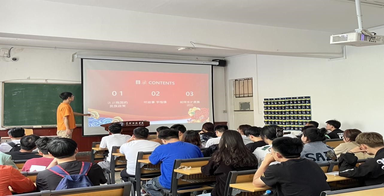 2022级软工班团支书以案例形式给同学们介绍了我国当前的民族政策和民族法制,学习了习近平总书记关于民族团结进步的重要讲话精神。让同学们深刻体会到“民族团结一家亲”的重要性。