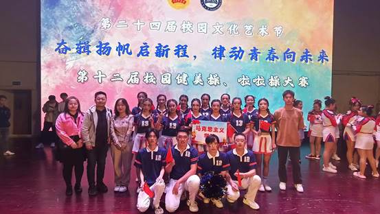 5月11日,马克思主义学院啦啦操代表队参加了第二十四届校园文化艺术节之 “奋楫扬帆启新程,律动青春向未来” 第十二届校园健美操、啦啦操大赛。我院作为首次参加此类比赛的队伍,经过认真筹备,刻苦训练,编排了精彩绝伦的啦啦操表演。
