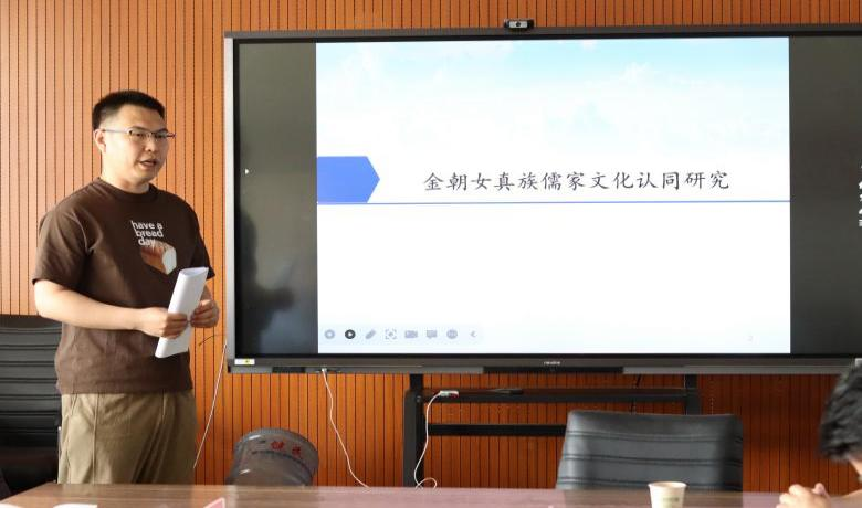 在答辩人自述环节,2020级学硕研究生胡一涛同学对论文的研究意义、论文框架、研究方法等内容进行了阐述。