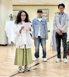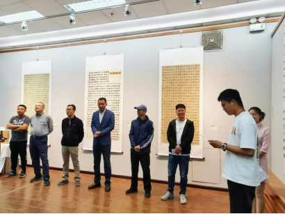 5月22日上午,首届书法学专业学生毕业作品展开幕式在学校美术馆如期举行。美术学院领导和中国画与书法系教师、书法学专业全体同学参加了此活动。美术学院副院长杨镇宇教授指出,本次书法作品展览参展学生共有19名,他们是我校招收的首届书法专业本科生,共展出书法、篆刻作品近60组。作品中涵盖了篆隶楷行草五种书体,同时展出一定数量的篆刻作品和综合材料作品,展陈形式多样、独具匠心。正如本次展览的主题“艺启向未来”,同学们在作品中能将古典与现代相结合,既有把握时代脉搏的新锐作品,也有与古为徒、入古出新的拟古作品,虽略显稚嫩,但其峥嵘之气,尤为难得。”