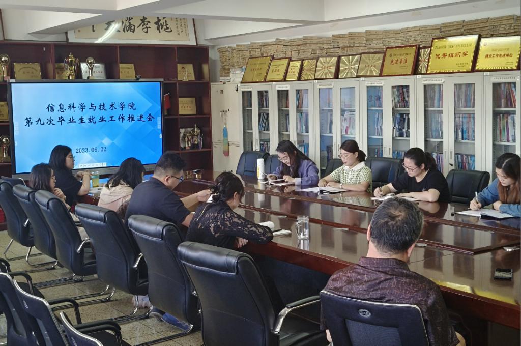 6月2日,信息学院在710会议室组织召开了第九次毕业生就业工作推进会,学院就业工作领导小组成员、系主任、校企合作班班主任、学工办辅导员参会,会议由学院党总支副书记董海燕老师主持。