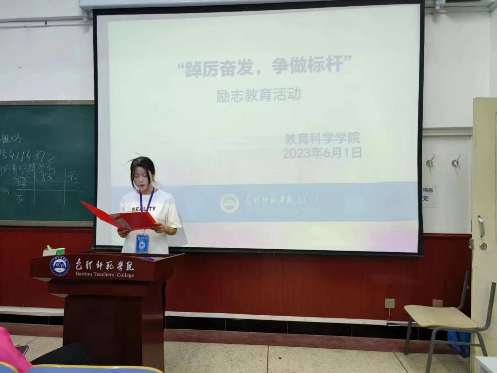 为深入学习贯彻习近平新时代中国特色社会主义思想主题教育,持续抓好学风班风建设,讲好成才故事,树立优秀学生典型,充分发挥榜样辐射作用,激发同学们奋发向上,励志成才。6月1日下午教育科学学院在博西104、博东311、博东407举办“踔厉奋发,争做标杆”励志教育活动,2022级全体学生参加。