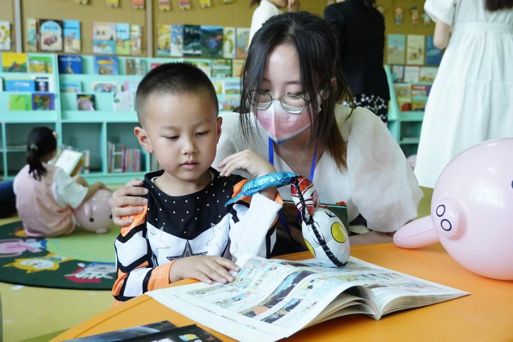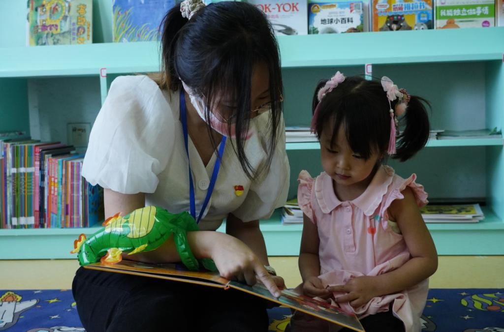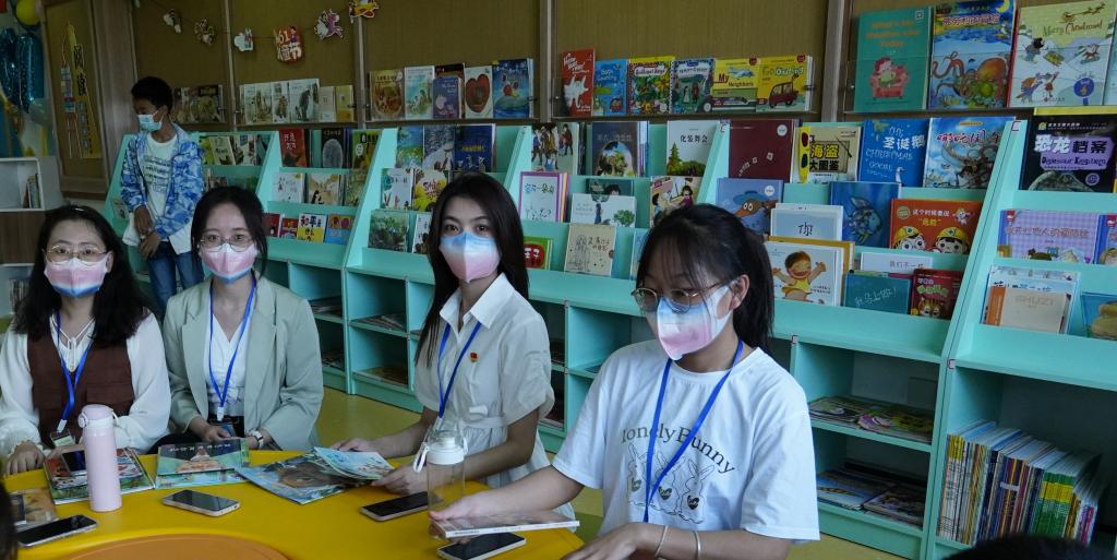 为持续深化学习贯彻习近平新时代中国特色社会主义思想主题教育,践行党员争当先锋承诺,发挥模范带头作用,把“我为群众办实事”落到实处,6月1日下午,教育科学学院学生党员参与学校六一亲子绘本活动,为儿童讲解绘本。