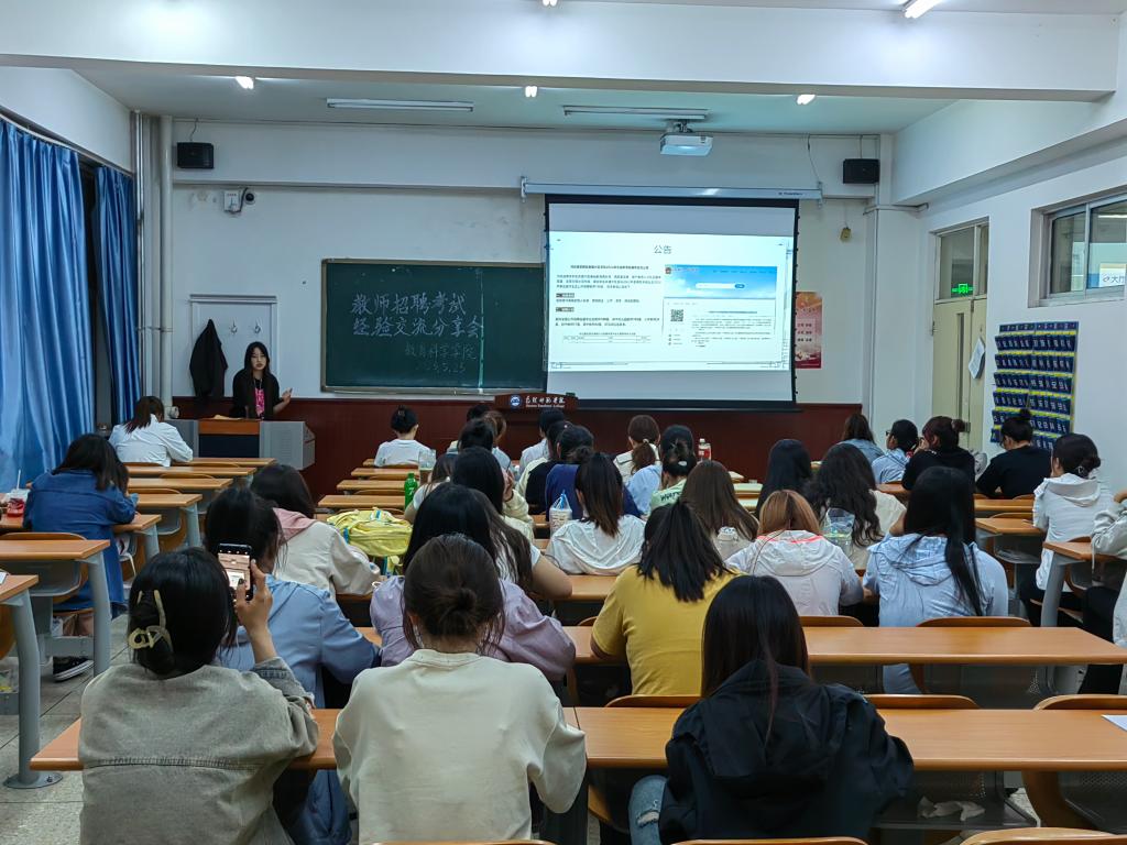 为了让同学们对教师招聘考试有充分地认识和了解,教育科学学院于5月31日晚在博东101举办了学前教育教师招聘考试经验分享会。分享会邀请了2019级教师招聘考试成功的同学,2020级、2021级、2022级学前教育专业本科生参加。