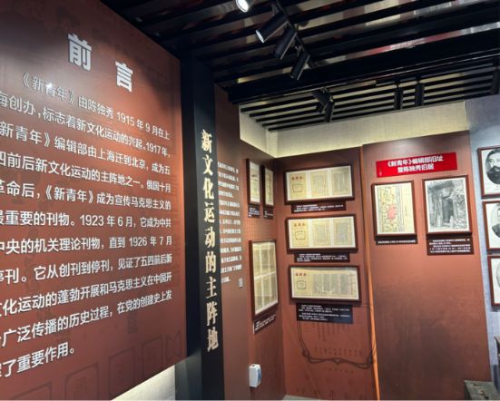 馆内旧居北房和南房分别推出“历史上的《新青年》”和“陈独秀在北京”两个专题展,展出了陈独秀、李大钊等早期思想者关于马克思主义的论述,再现了“马克思主义在中国的早期传播”这一伟大历史进程。