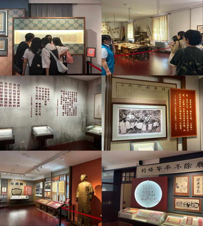 从走廊走到东侧北端,是新潮社活动室的旧址。室内桌子上、架子上堆满了写着口号的白布条幅,地上还散落有大量的笔纸与传单。看着五四运动前夜的场景,作为学生党员的我们深受感触,激动的心情久久难以平复。