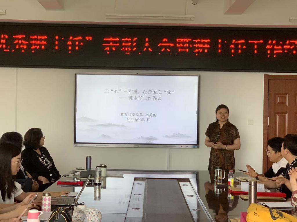 为深入学习贯彻习近平新时代中国特色社会主义思想主题教育,加强教师师德师风建设,激励广大教师学习先进典型,进一步加强班主任队伍建设和着力提升青年教师的班级管理能力。6月8日下午4时,教育科学学院在恒德楼1313室举办“优秀班主任”表彰大会暨班主任工作经验交流分享,学院领导班子及全体教职工参加。