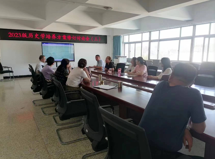 根据《包头师范学院制定2023版本科专业人才培养方案的指导意见》,在前两次修订研讨会的基础上,结合最近对包头市各区教育局的深度调研结果,历史文化学院于2023年6月14日在博学楼825会议室召开了历史学专业2023版人才培养方案修订第三次研讨会。历史文化学院院长郝建平主持会议,历史学专业全体任课教师参会。