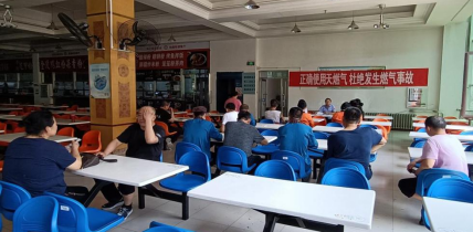 检查后,对食堂全体从业人员进行了燃气安全知识专题培训,从燃气设备的认识、事故案例分析、燃气使用的注意事项以及自查自检等几方面进行培训。