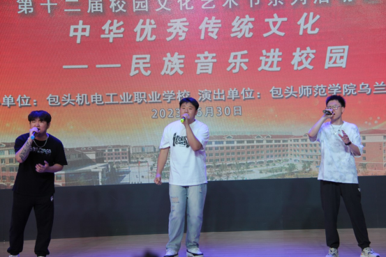 包头机电工业职业学校党委书记王丰生,党委委员、纪委书记、副校长张力,党委委员、副校长王永义,包头师范学院乌兰牧骑带队老师张伟博士,与师生共同欣赏了一场精彩绝伦的音乐盛宴。