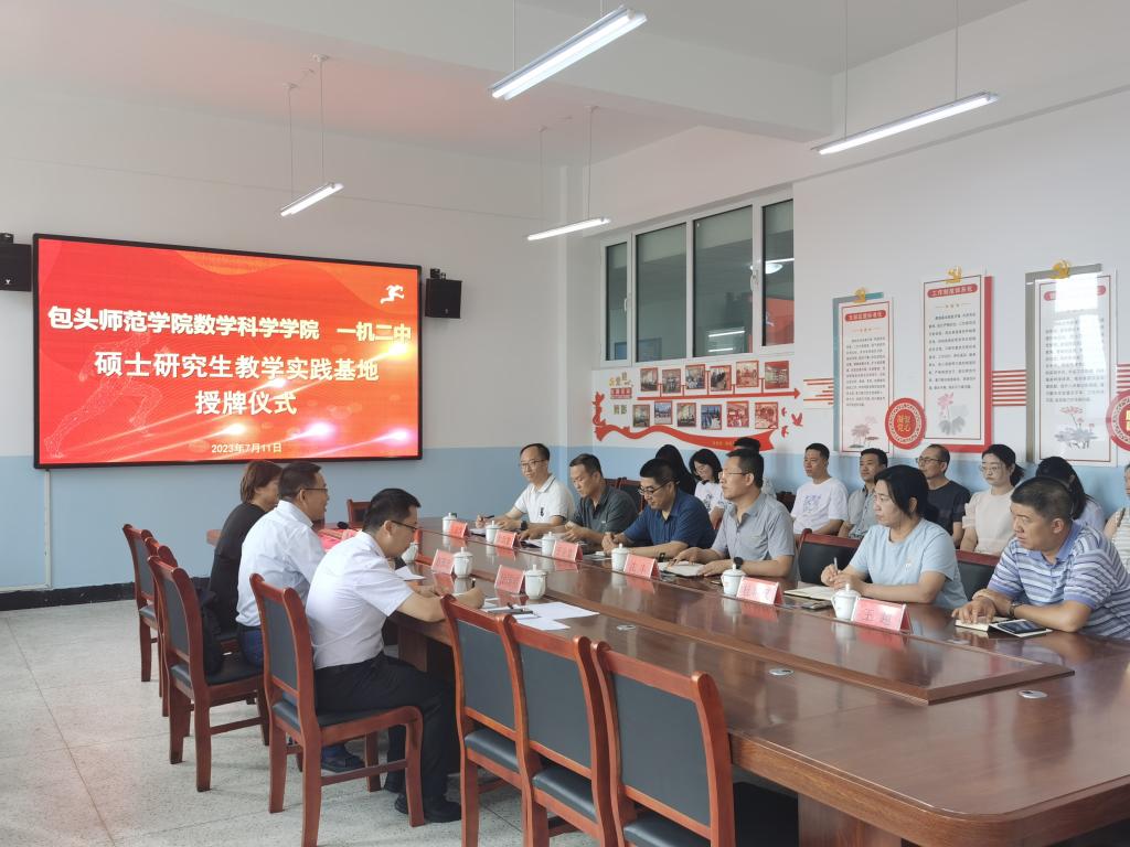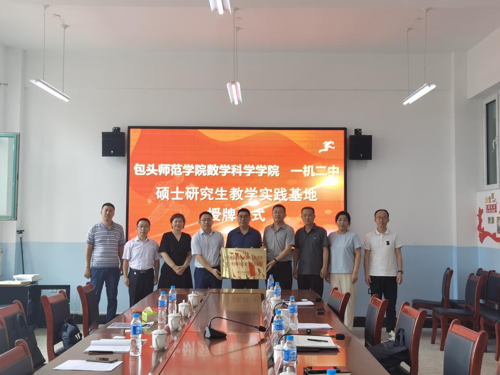 2023年7月11日,包头师范学院数学科学学院与包头市一机二中硕士研究生教学实践基地授牌仪式在一机二中举行。仪式邀请青山区教育局于全富副局长参加。一机二中沈丰校长携全体校领导,教师代表40余人,数学科学学院赵国忠院长、朱丽书记、徐国明副院长参加仪式,仪式由赵国忠院长主持。
