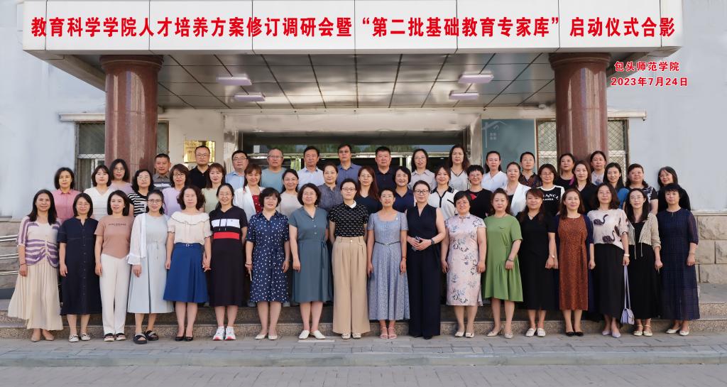 在整校推进师范专业认证工作之际,为了精准定位各专业人才培养目标、细化目标内涵和毕业要求、形成科学合理的课程体系,提高人才培养质量;同时为了深入推进教育科学学院与地方基础教育协同育人机制,构建一流师范生人才培养体系,突出专业特色,教育科学学院于2023年7月24日上午在恒德楼1313召开了教育科学学院人才培养方案修订调研会暨“第二批基础教育专家库”启动仪式。出席会议的有教务处副处长王骞、教育科学学院领导班子和教师代表,会议嘉宾包括来自包头市区两级的教研员代表、教育科学学院实践基地负责人和教师代表。会议由教育科学学院副院长刘俊英主持。