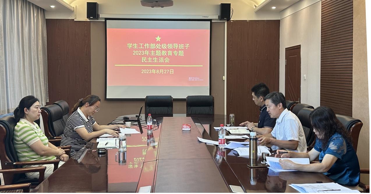 按照学校党委部署和要求,8月27日下午,学生工作部处级领导班子2023年学习贯彻习近平新时代中国特色社会主义思想主题教育专题民主生活会在勤业楼第二会议室召开。校党委委员、副校长杨海燕,学校巡听旁听第六工作组联络员杨文婷到会指导。学生工作部部长薛志东主持会议,学生工作部处级领导班子全体成员参加会议。