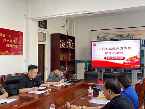 黄海点评指出,生物科学与技术学院主题教育专题民主生活会主题明确、程序规范,态度严肃认真,整体达到预期目的,为学院下一步工作的开展打下了良好基础。黄海书记对学院下一步工作提出五点建议:一是提高对党的忠诚度,与党中央保持高度一致,坚决贯彻落实党中央的决策部署,能够与学院具体实践相结合进行部署、落实。二是抓好政治理论的学习,包括专业学习、政治学习和业余学习,用习近平新时代中国特色社会主义思想等党的最新理论成果武装的头脑,努力提升政治能力、思维能力、实践能力,提高政治判断力、政治领悟力、政治执行力,旗帜鲜明地拥护党的领导。三是要抓好问题整改工作,坚持问题导向,推动整治整改工作走深走实,要勇于发现问题和解决问题,尽可能早发现、快解决。四是加快推动学院高质量发展。把主题教育、调查研究、理论学习成果转化为推动学院发展的动力,对接好国家、自治区的发展战略,切实提高办学水平。五是加强科研平台建设,加强青年教师培养,找出自己专业的特色,凝心聚力,破解学院发展难题,打造出一支敢闯敢拼的高层次人才队伍。