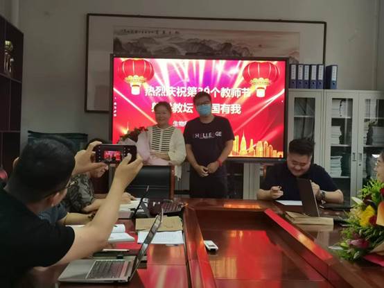9月7日下午,在全国第39个教师节来临之际,生物科学与技术学院召开以“躬耕教坛,强国有我”为主题的庆祝第39个教师节大会暨新入职教师宣誓仪式。学院党总支副书记刘一峰主持会议,学院副院长王志红院长、温彤及全体教职员工出席。会议开始,刘一峰副书记首先向长期以来辛勤耕耘在教学、科研、管理和服务一线的教职员工鞠躬致以衷心的感谢,向刚入职的新教师们表示热烈的欢迎和期待,向学院各战线涌现出的先进个人表示热烈祝贺,并敬献鲜花。表达学院对优秀教师队伍真诚的祝贺和他们对学院发展做出巨大贡献的诚挚感谢。