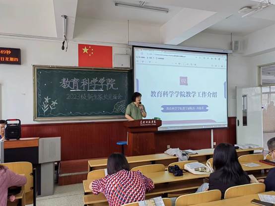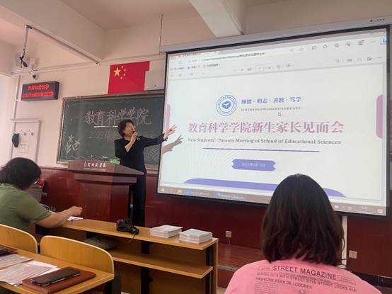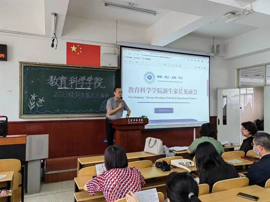 为了进一步推动家校协同育人工作发挥实效,促进沟通交流,共同做好新生培养教育工作,9月7日下午,教育科学学院在博400召开2023级新生家长见面会,本次见面会线上线下同步进行。会议由党总支副书记李志强主持,院长李芳、副院长刘俊英、系主任、23级各班班主任、辅导员及23级新生家长参加此次会议。