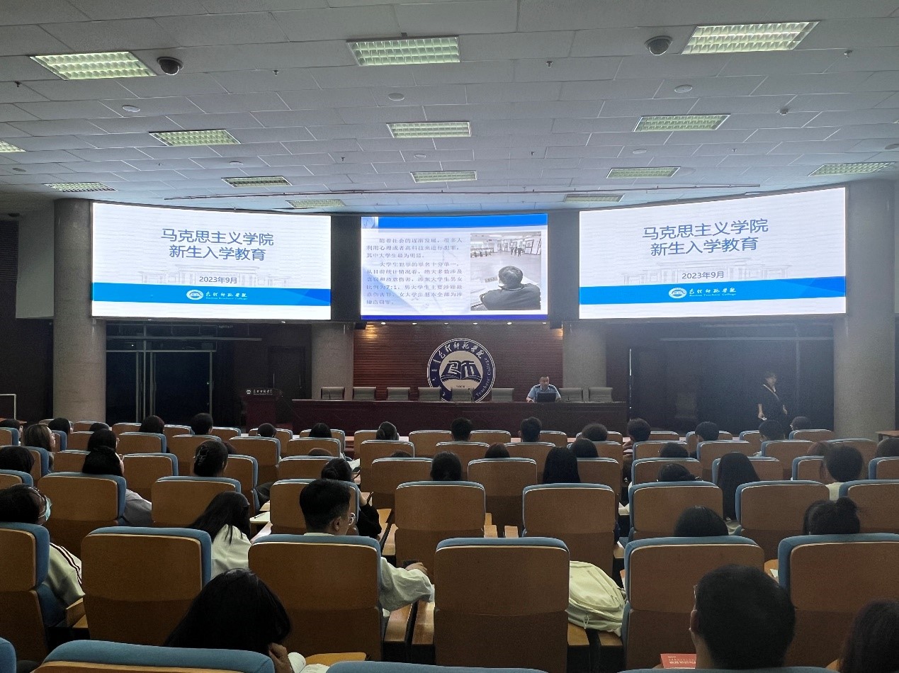 为进一步做好法治宣传教育工作,提高学生法治意识,加强学生师德师风教育,马克思主义学院、历史文化学院于2023年9月12日举办法治教育讲座。本次活动邀请内蒙古自治区包头监狱纪检工作办公室主任张东峰警官主讲,马克思主义学院学工办主任李世光、历史文化学院辅导员张英、马克思主义学院全体学生、历史文化学院新生参加了本次讲座。