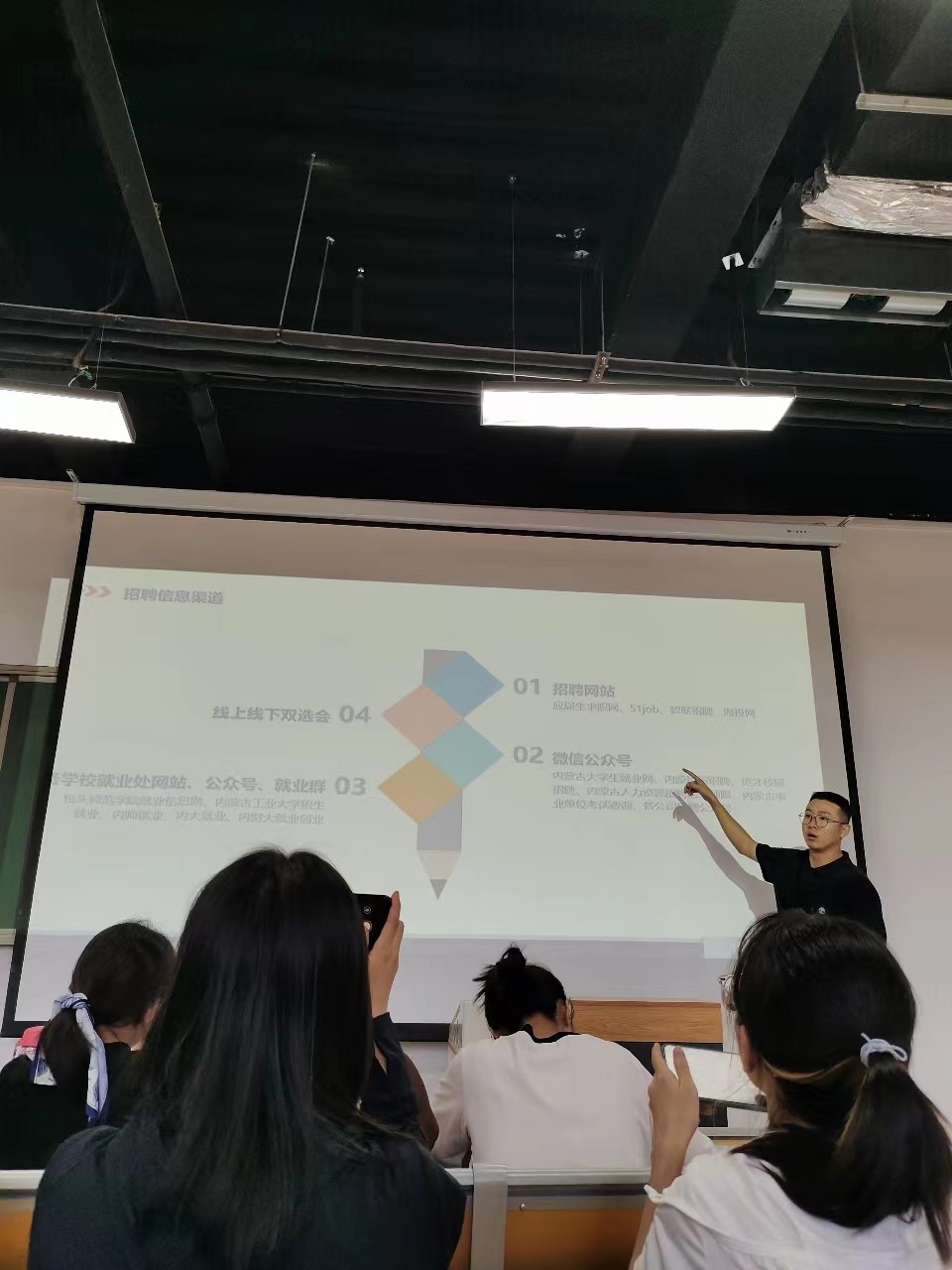 讲座的最后,魏骁博老师表示毕业求职需要做好各类前期准备,拓宽就业信息获取渠道、持续提升个人职业竞争力、强化个人心理素质,以自信的姿态去面对挑战。