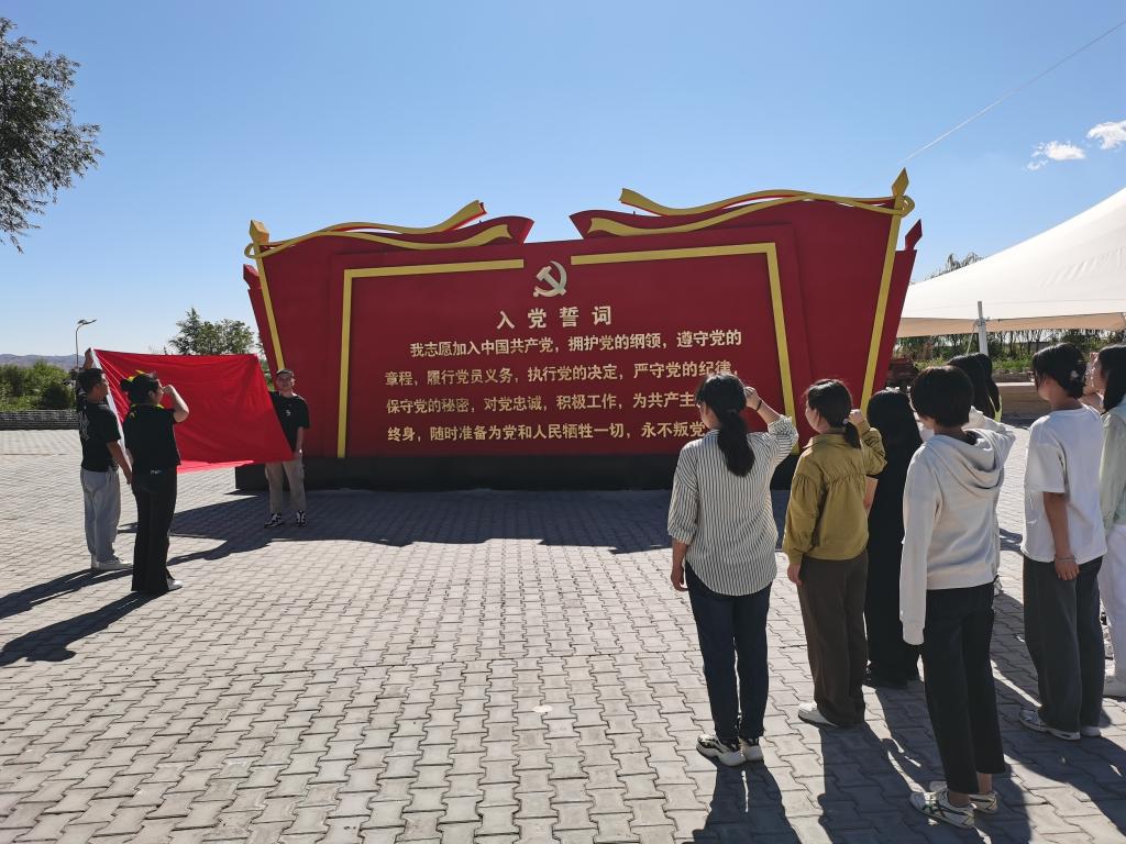 初入乌梁素海生态保护区,广大党员同志庄严地举起右拳,在研究生党员姜植蓝同志的带领下,面对鲜红的党旗重温入党誓词,一个个铿锵有力的字眼更加坚定了大家的信念。