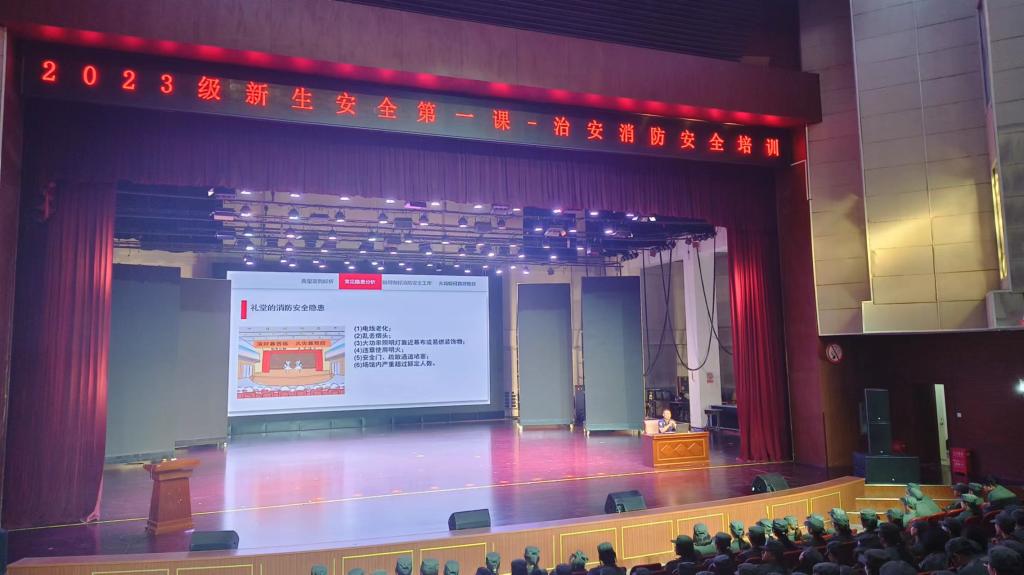为了培养学生的消防安全意识,增强学生的消防处置能力,强化学生防诈反诈意识,9月20日,保卫处邀请青山区消防大队指战员对我校大一新生在学校会堂和博学楼北广场分三批进行了“安全第一课--治安消防安全”培训。