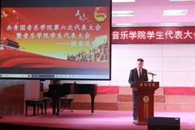 贾璐老师代表音乐学院学工办团总支发言,向各位同学的辛苦付出表达了衷心感谢,同时对音乐学院学生会、团总支、学生骨干提出寄语:一要把握机会,借助音乐学院这个大平台,高标准、严要求地培养作为学生干部的素质和能力。二要凝心聚力,团结协作,成长为有责任、敢担当、肯付出的学生骨干。三要锻炼能力,提高魄力,处理好专业学习与学生工作的关系。四要不忘初心,接续奋斗,牢记全心全意为同学服务的宗旨。