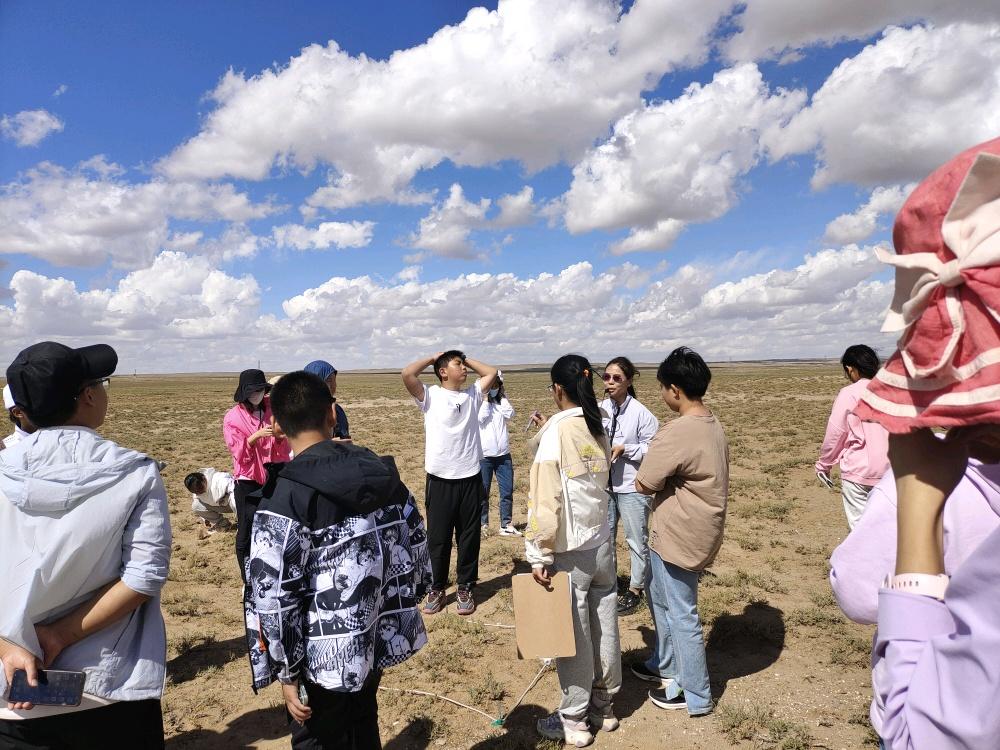 本次研学聚焦东经110º,从包头市青山区出发,途径石拐区大庙乡、固阳县金山镇、达茂旗百灵庙镇、满都拉口岸,共选取了15个考察点,主要考察阴山南北的维度地带性差异。途中丁老师、张雪峰老师为研学师生实地讲解考察点的气候、植被、土壤、民居等方面特点和差异,同时以启发式的提问引导大家深入思考包头市域南北景观带、农业利用、传统民居等方面的变化规律。丁老师和张老师以渊博的地理学知识和热情洋溢的的讲解激发了大家探索包头地理环境的极大兴趣,现场互动频繁,各中学团队纷纷发言,从不同角度谈研学过程中的感悟,同时向在场中学生提问,培养学生善于观察自然、发现问题的能力。研学结束时,大家表示收获满满,以地理人的视角观察自然、亲近自然,对包头地理环境有了更加深入的认识。