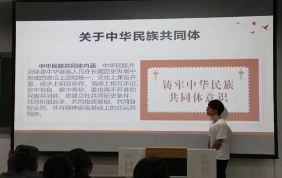 随后,主讲人向学生们谈到切实铸牢中华民族共同体意识的重要性。并向同学们介绍学院今后将参加各种形式的民族团结进步活动,如民族文化展示、民族团结演讲比赛等,以加深对民族团结进步的理解和认识。