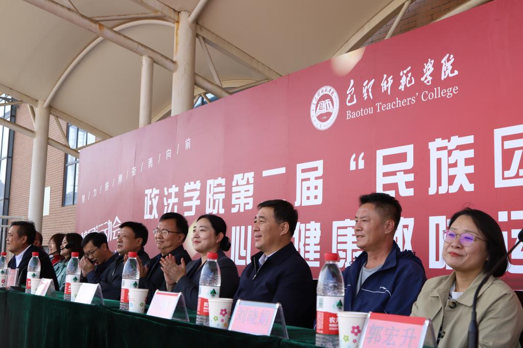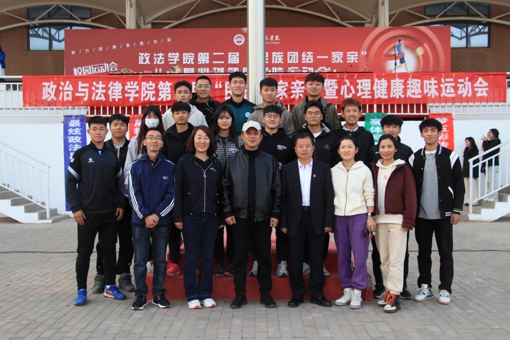 为了贯彻落实立德树人和“健康第一”的教育理念,进一步推动“铸牢中华民族共同体意识”教育,让师生享受运动带来的快乐,充分展现出政法青年的青春风貌,10月12日下午,政法学院在九原校区田径场举办了第二届“民族团结一家亲”暨心理健康趣味运动会。校党委副书记、校长郭金虎,副校长杨海燕,校工会主席张宗祥,党政办主任盖永涛,宣传部部长、新校区管委会主任呼禾,学生工作部副部长杜志敏,团委书记刘晓娟,保卫处副处长邢忠诚,政法学院党总支书记孙傲飚,院长高德胜,副院长魏成出席了会议。政法学院全体教职工、大一到大三全体学生参加了运动会。运动会开闭幕式由政法学院党总支副书记郭宏升主持。