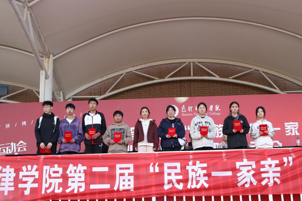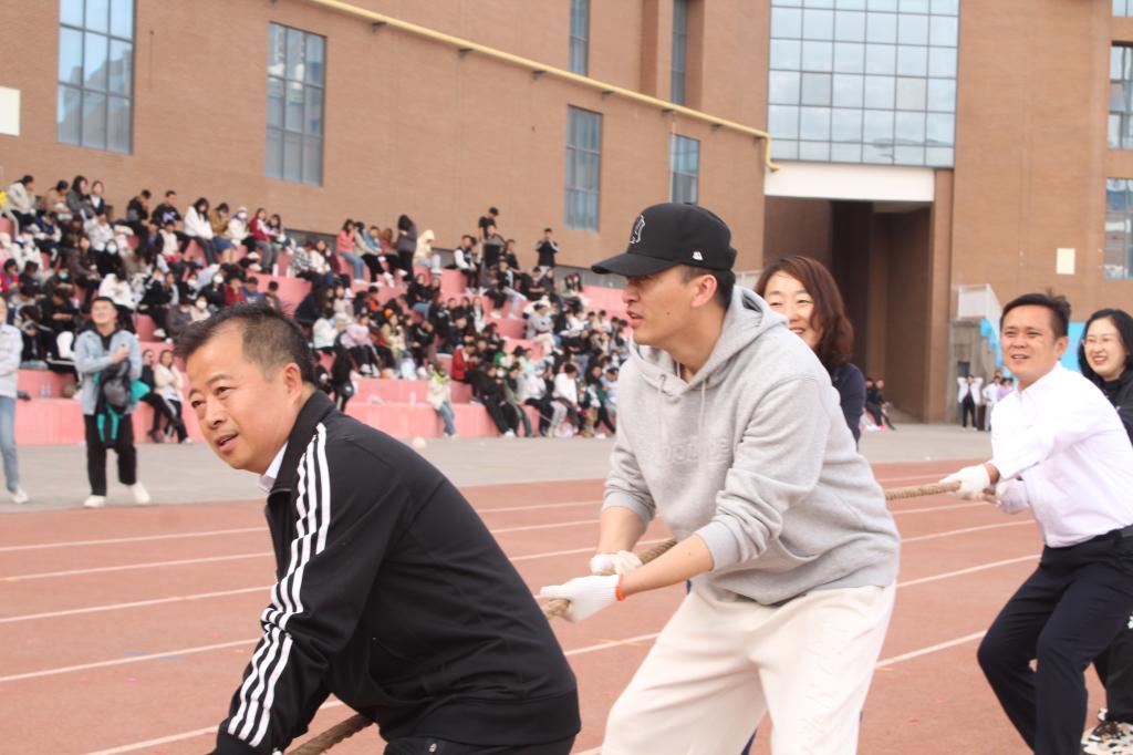 田径场上,裁判们掐表计时,恪守“准确、公平、公正”的原则。运动健儿们威猛如虎,矫捷如燕。赛场上洋溢着紧张又欢乐的气氛。在拔河、两人三足等趣味运动项目中师生们通力合作,其乐融融,真正体现了努力拼搏的运动精神。在运动场上激烈的比赛后,迎来了本次运动会的闭幕式。党总支书记孙傲飚宣布了比赛结果,行政系老师韩泽红、辅导员白丽、学工办主任袁爱荣、党总支书记孙傲飚分别为获得各类奖项的班级和运动员颁发了荣誉证书。