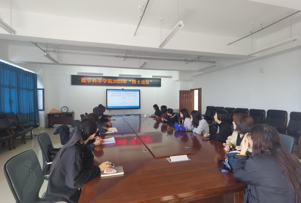 10月20日下午,由包头师范学院科技处主办,由数学科学学院承办的“博士论坛”在恒德楼1408会议室成功举办。会议由数学科学学院教学院长王丽花主持,数学科学学院没有教学任务的教师参加。