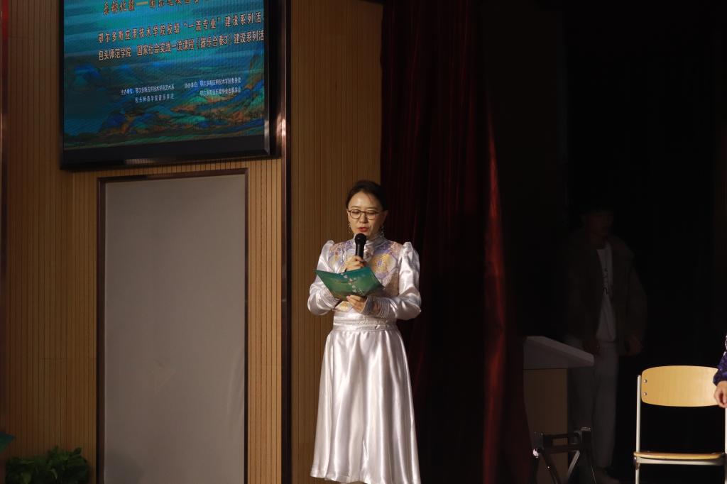晚上19:00举办了“乐动北疆”民族室内乐专场音乐会,由我校器乐教研室主任苗燕老师与鄂尔多斯应用技术学院器乐教研室主任刘源源老师共同主持。音乐会上有作品形式有独奏、重奏与合奏,乐曲风格涵盖内蒙古传统民歌、黄河流域传统音乐、丝绸之路音乐文化。
