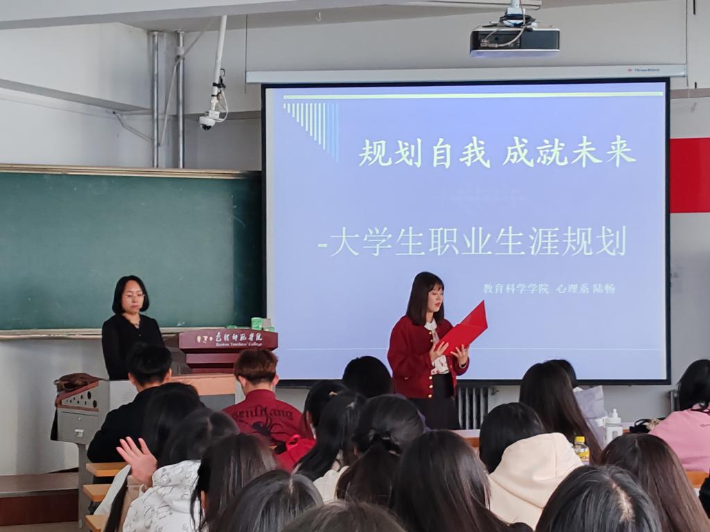 根据《包头师范学院举办全区第三届大学生职业规划大赛校赛的活动方案》的要求,教育科学学院积极备赛,广泛动员,为帮助同学们能更好理解大赛要求及提升参赛能力,10月26日下午,学院邀请应用心理系副教授、国家二级心理咨询师陆畅开展“规划自己,成就未来”赛前专题辅导讲座,大一、大二、大三共120人参加,活动由辅导员王璐然主持。