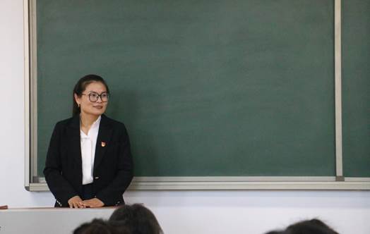 新任主席团成员孙丹上台发言,表示要始终坚持全心全意为学院师生服务的宗旨,在院党总支的引领和院团委的带领下扎实推进各项工作,充分发挥模范引领作用。